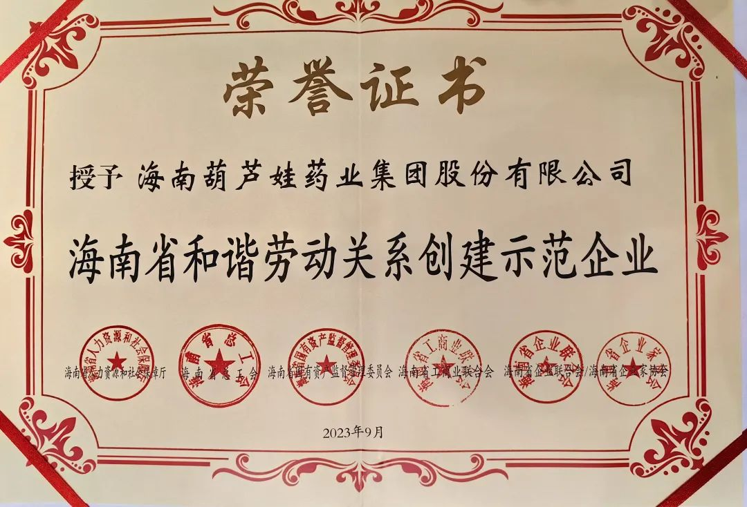 AG旗舰厅药业集团获评“海南省和谐劳动关系创建示范企业”